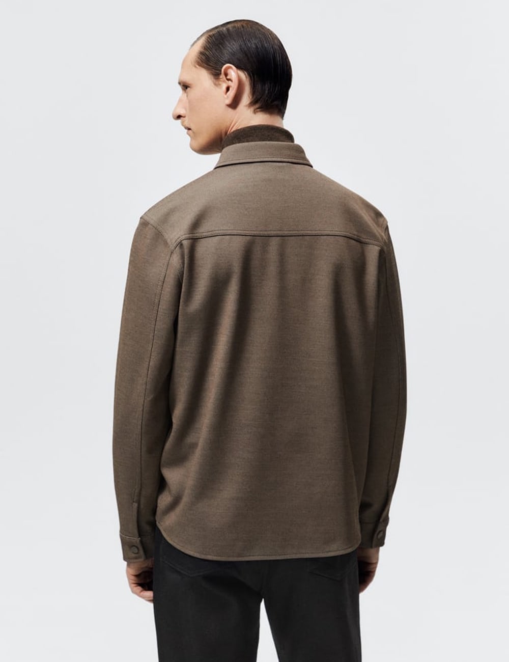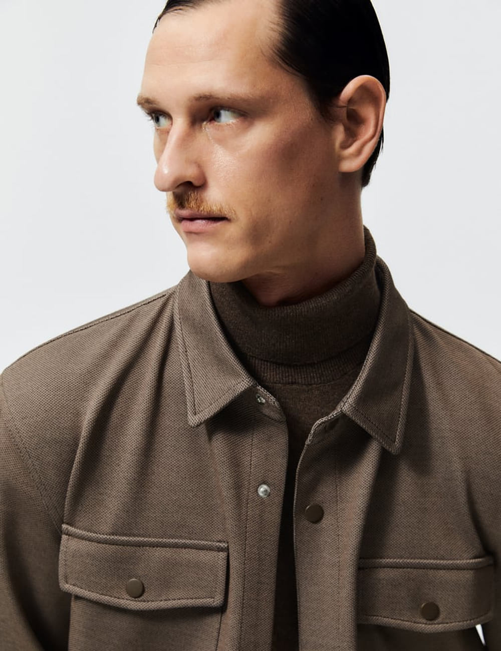 Cotton-blend fabric. Textured fabric. Long design. Evasé design. Wrap collar. Puffed short sleeve. Front slit. Knot detail. Bow closing on the back.